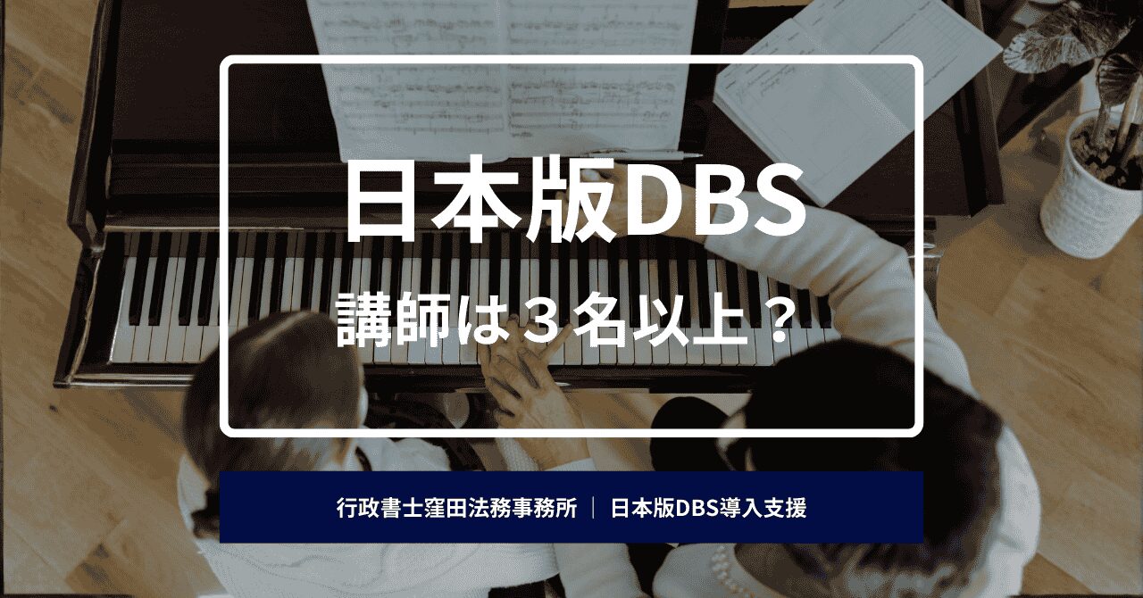日本版DBSの認定を受けることができるのは、原則として「指導者(講師・コーチ等)が3人以上いる事業者」に限られます。