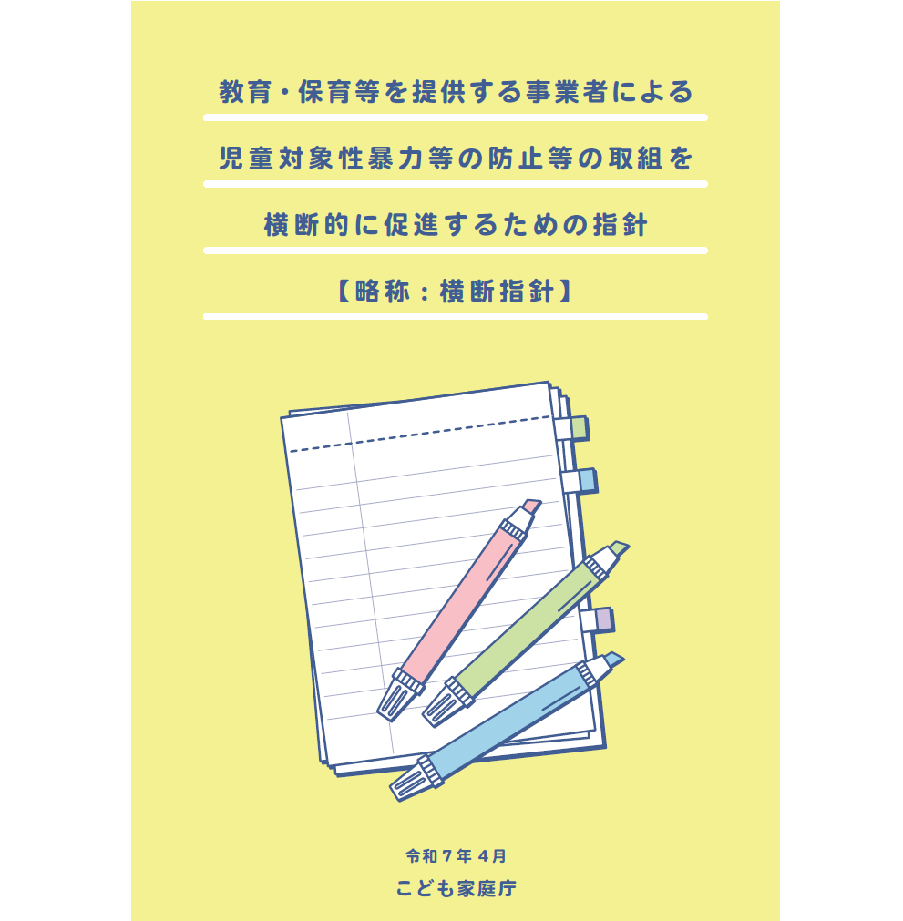 実は、こども家庭庁は認定制度とは別に、「教育・保育等を提供する事業者による児童対象性暴力等の防止等の取組を横断的に促進するための指針(通称:横断指針)」というガイドラインを策定しています(横断指針は、法律に基づくものではなく、本横断指針の策定により、事業者に対して新たに義務が課されるものではありません)。
