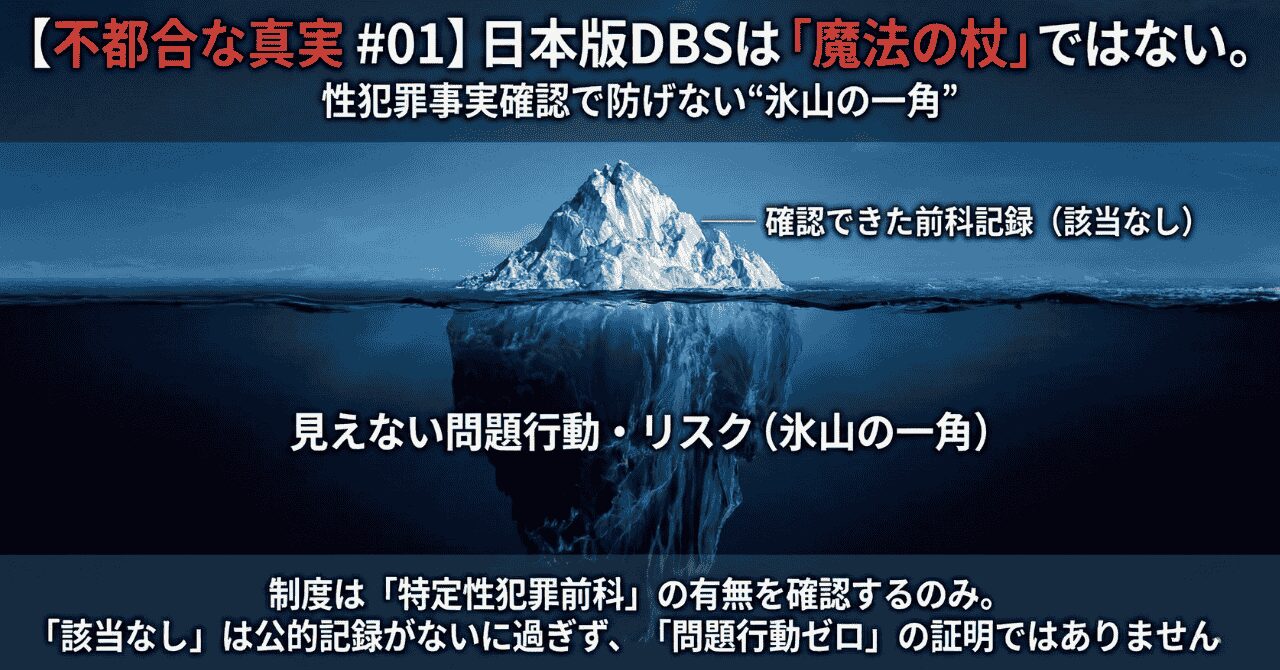 犯歴照会システム(DBS)は、あくまで過去に明確な汚点がある人物を入り口で弾くための「最低限のフィルター」に過ぎません。