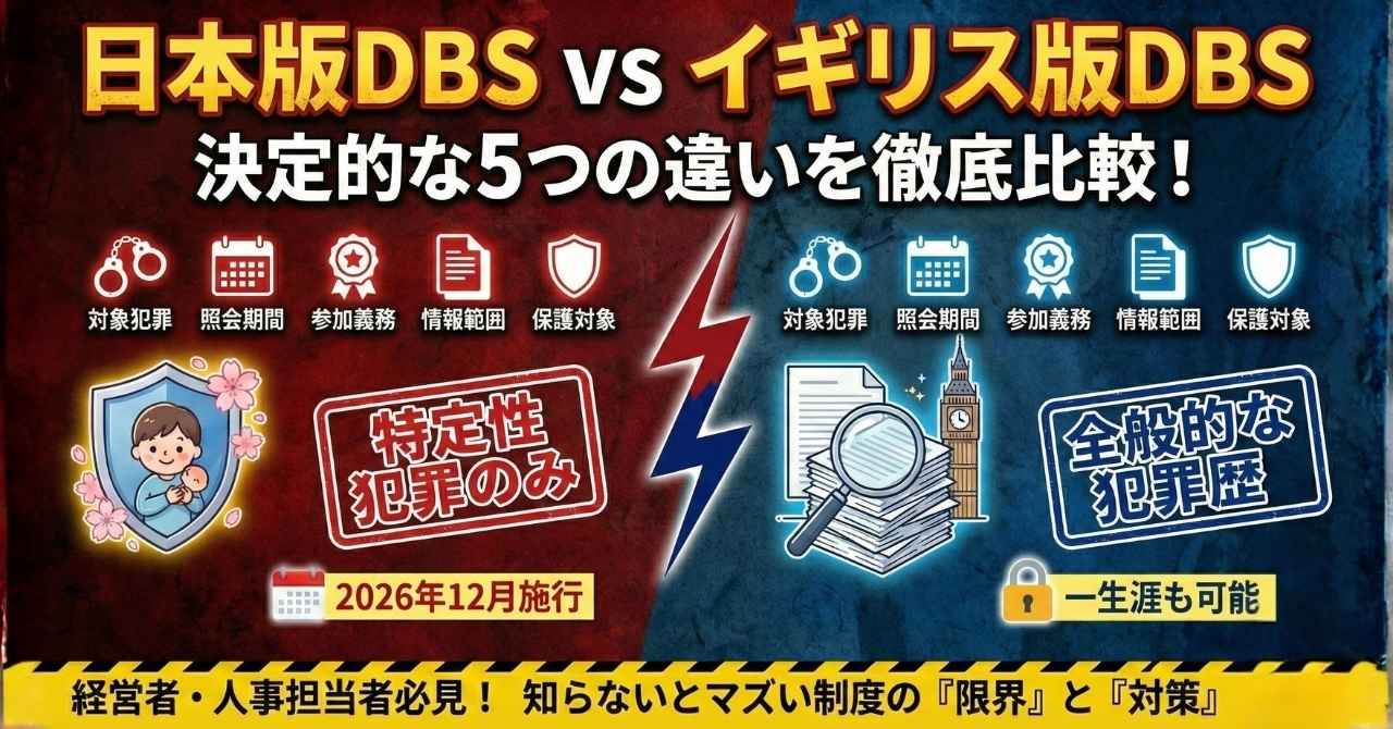日本版DBSはイギリスをモデルにしていますが、日本の法制度や憲法との兼ね合いから、独自の設計がなされています。事業者が知っておくべき相違点は以下の5つです。